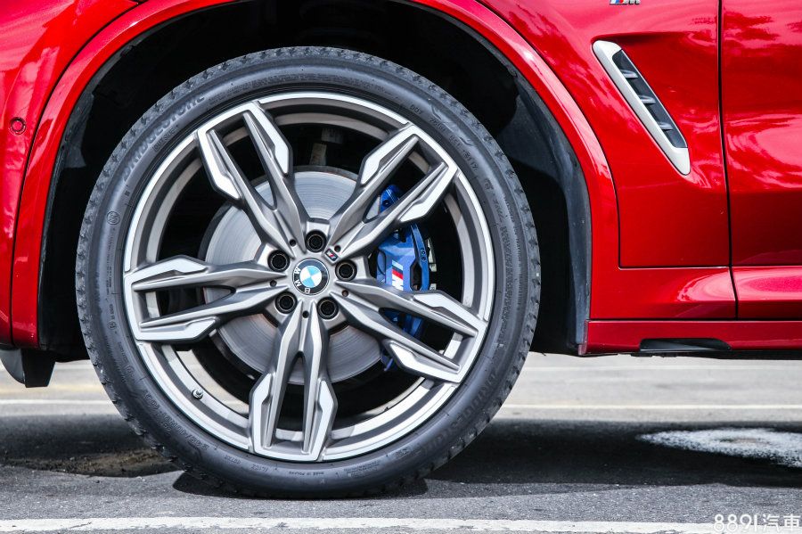X4 M40i在胎圈尺碼上頗能呼應其性能特質,標配M款718型雙幅鋁圈、尺寸更是來到前245/40R21、後275/35R21,這輛試乘車所搭配輪胎為普利司通Alenza都會休旅車專用胎款,未採用更具性能色彩的配胎確實有些出乎意料。