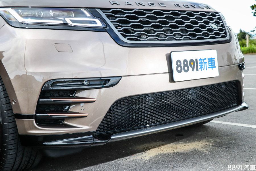 Velar在路上絕對是目光焦點,R-Dynamic車型專屬外觀更是讓車頭線條更為飽滿,運用玫瑰金、亮黑表面提升質感,雖然並非常見的性能氣息,卻也散發不怒自威的氣勢。