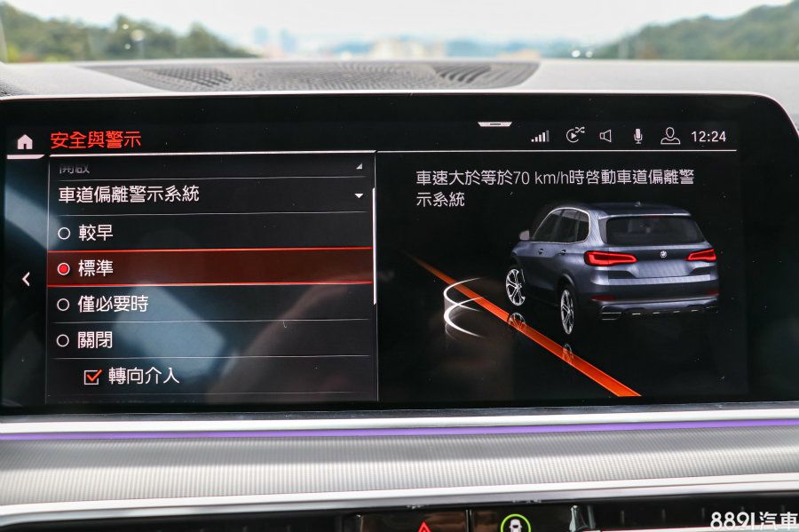 主動安全設定可從中央按鍵開啟,主動煞停、車道維持輔助等項目,以光是車道維持就有三種介入時機,選擇「較早」擁有最好的「維持」效果,但以輔助力道來說都偏強,稍加適應一下即可。