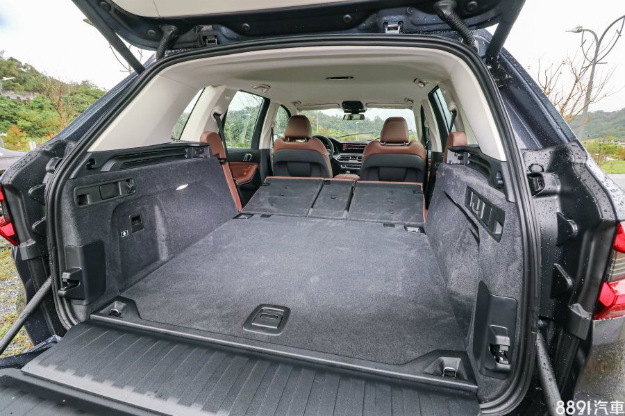 上下對開式尾門為歷代X5傳統,能夠保持開口大面積之餘,置物時也較不容易用傷保桿,下尾門可承重250kg,應付日常貨物進出不是問題,腳踢感應開啟也讓操作起來特別輕鬆;在空間表現部分,後排未傾倒時擁有650L,4/2/4倒平後排則可延伸至1860L,廂內空間方正又平整,符合中大型休旅機能性需求。