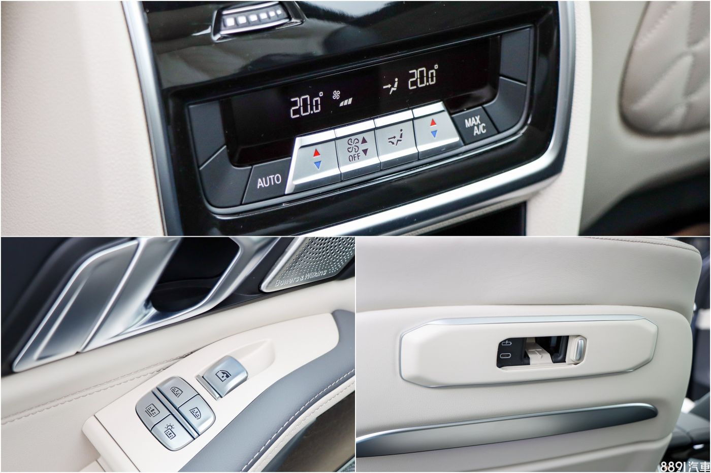 X7雙前座功能完善,腿靠、腰靠、頭枕、上半背部都能獨立電動調整,兩旁側翼還會隨著Sport模式主動夾緊,在X7車上有個簡單的原則「能電動就不手動」!兩組記憶功能與通風加熱當然也是標配,真要挑剔大概就是少了按摩機能吧。
