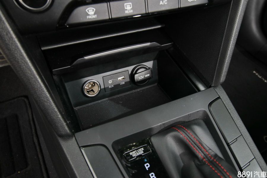 Elantra Sport將電源、AUX in、USB整合在排檔座前方,整潔、好使用,設計比Auris理想。