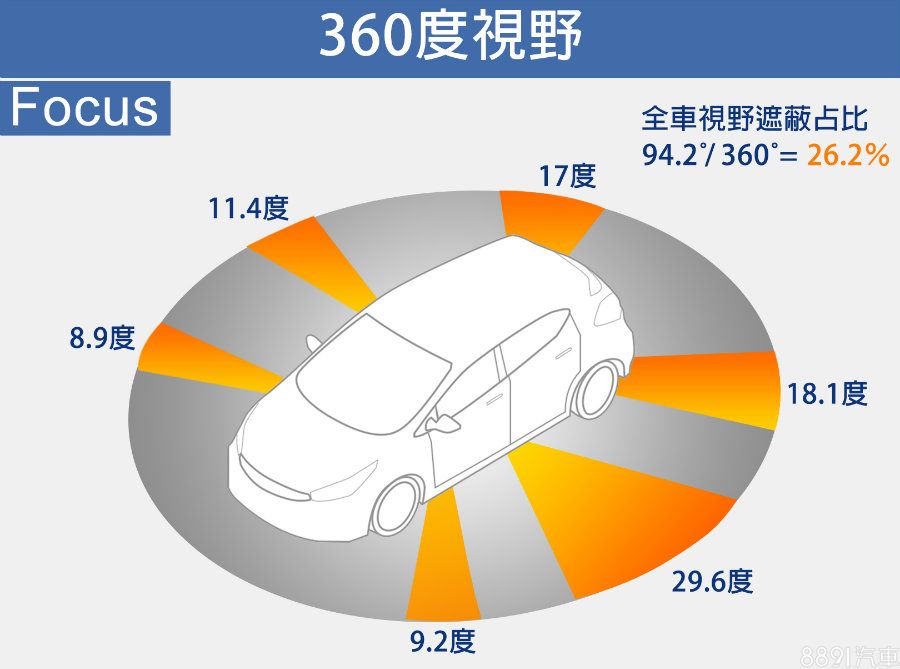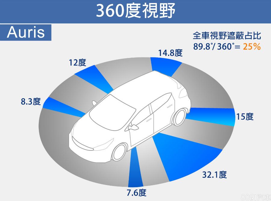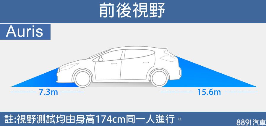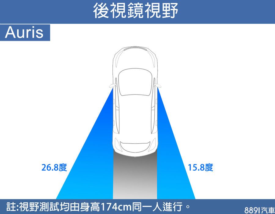 兩部掀背車的全車視野遮擋表現相當,A、B、C柱數據各有優劣,但若看總數據,Auris全車視野略好一些。