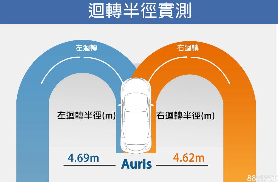 在隔音表現上,Auris拿下最多領先,但其實差距甚小,實際感受也是在伯仲之間,不容易從耳朵直接辨識出誰特別安靜,或是誰特別吵雜。迴轉半徑測量 Focus表現殿後