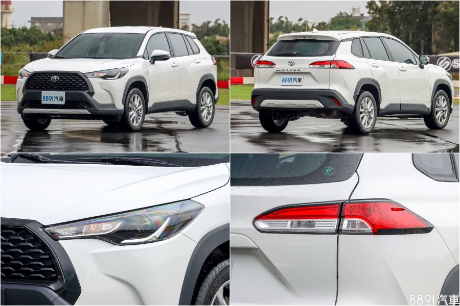 不同於老大哥RAV4有稜有角的銳利線條,Corolla Cross在家族化設計中加入較多圓潤柔和的元素,讓細節簡化不少。和RAV4相同地方則在於,車身及輪拱周圍都用上大量防刮塑料,營造鮮明的戶外粗獷風格。試駕車汽油豪華僅配置鹵素頭燈組,LED頭燈及日行燈需要到汽油尊爵及油電尊爵以上才標配。