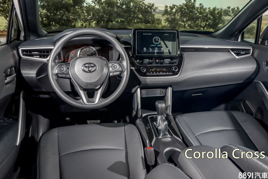 Corolla Cross的內裝架構大致與Altis相同,中控台副駕駛座前方區塊以大面積皮質包覆,前後門飾板也見得到軟質塑料鋪陳。不同的地方在恆溫空調下方的置物格及USB孔位置,使用上比起Altis更為就手。此外,傳統手煞車拉桿也改為足踏式,視覺上看來更加簡潔。