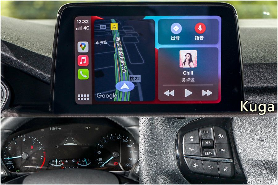 8吋Wifi聯網主機是汽油豪華以上車型的標配,支援最基本的廣播及手持裝置連接,導航或Apple CarPlay及倒車顯影等功能則須加價選配,功能略顯陽春。儀錶板採雙環式搭配右側4.2吋MID資訊幕,功能顯示及判讀都屬簡單易懂。方向盤右側整合定速、車距調整及車道維持等按鍵,操作也都相當直覺。
