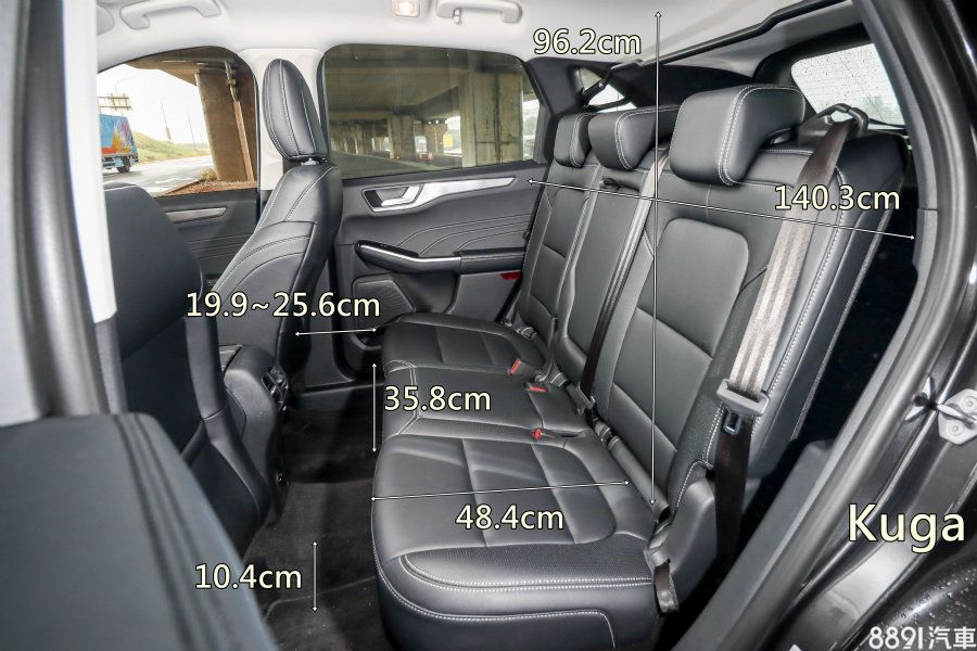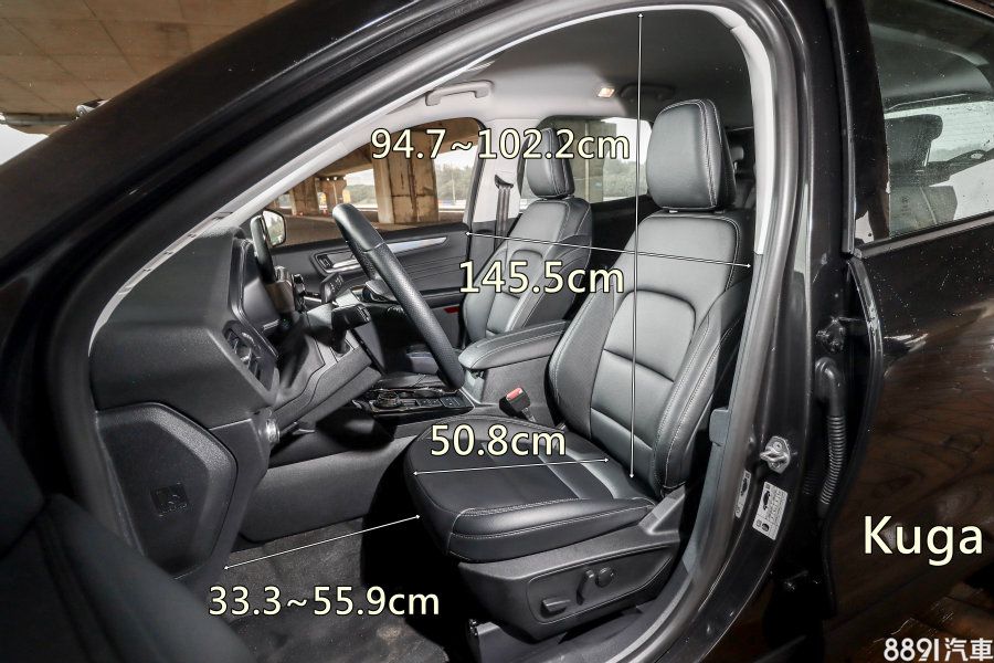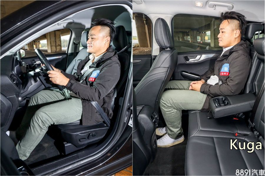 Kuga的座椅泡棉設定相對硬朗,整體支撐性佳,有助於降低長途乘坐的疲勞感;駕駛座另配置8向電動調整,是勝過Corolla Cross的優點之一。後座部分雖然空間較為寬敞,但礙於客貨車認證,座椅調整機能受到限制,椅背角度較為直挺,連帶影響到乘坐舒適性。不過該有的中央扶手及後座出風口都沒缺少,且另在出風口下方設置12V插孔可使用。