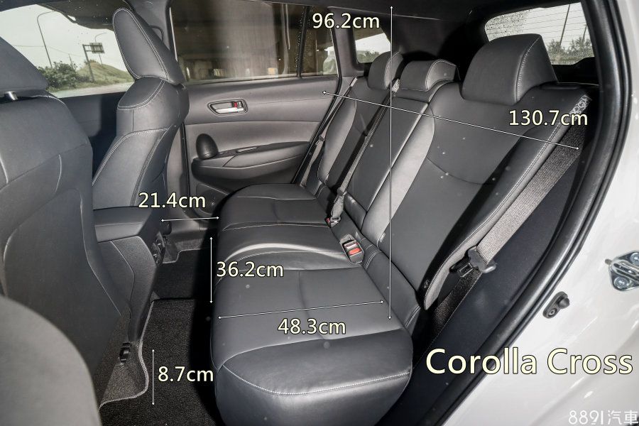 乘坐舒適性是多數Toyota車系的強項,Corolla Cross座椅剪裁貼身,支撐性及包覆性都頗具水準,沒有太多挑剔空間。後座空間實測數據雖然不及Kuga,成人入座仍屬充裕,且椅背具備兩段角度可調,坐姿也能符合人體工學,僅有椅面稍微偏低,但並不影響舒適性太多。此外,中央扶手及後座出風口都一應俱全,配置不輸給中型休旅車。