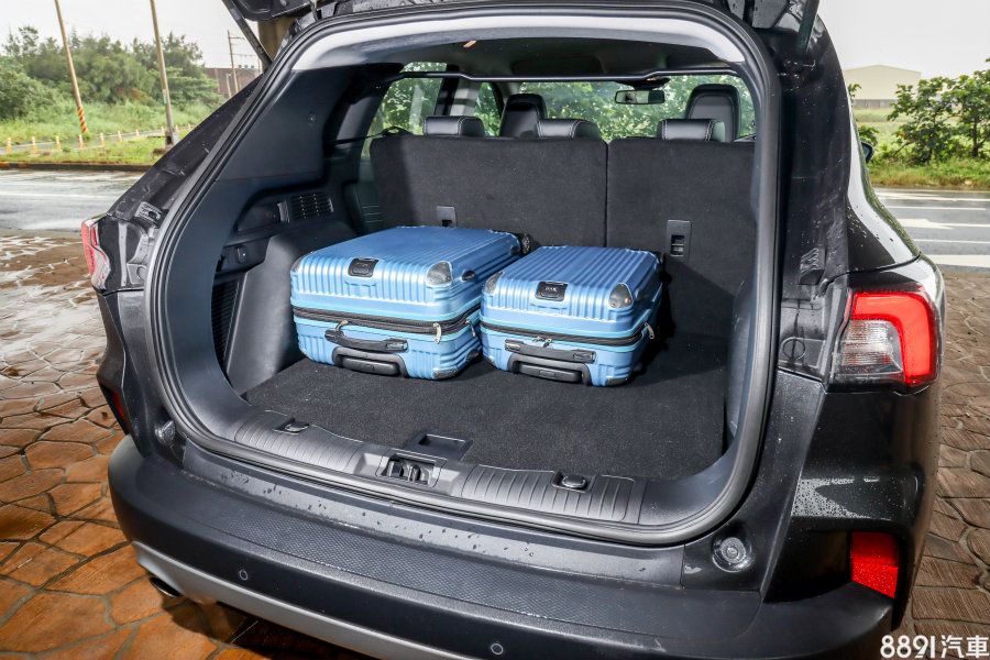 放入兩只行李箱後,可以看得出Kuga在標準五人座模式下,深度比起Corolla Cross更加充裕,兩側輪拱設計也相對不佔空間,要應付大量載物需求時會更加從容。