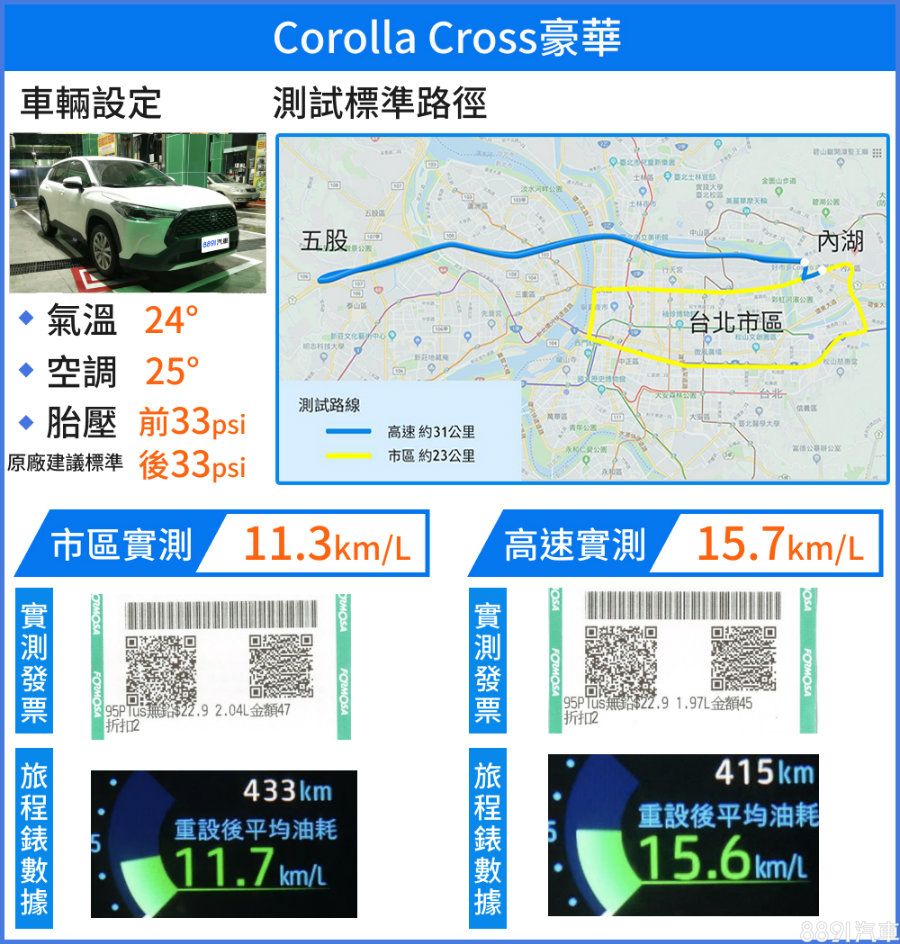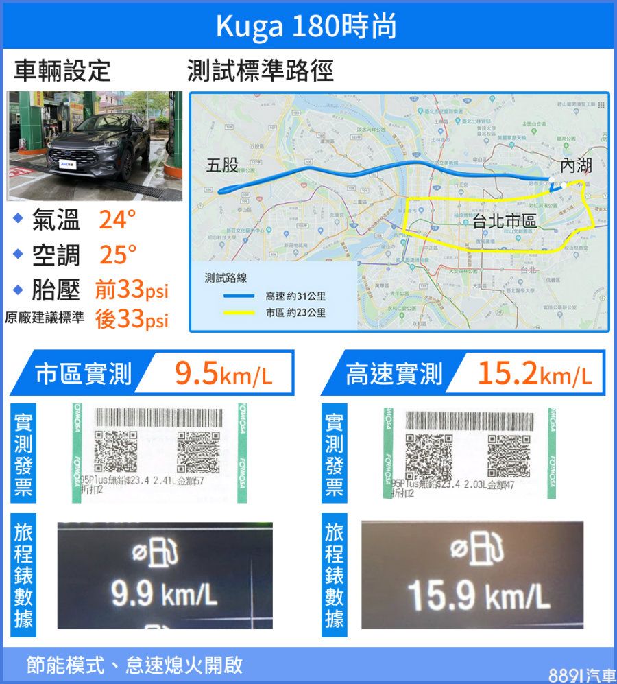 這回油耗測試路況十分順暢,沿途都能夠維持最高速限行駛,Kuga在測試中採用節能模式並開啟怠速熄火功能,沿途停等紅燈幾乎都能熄火節省油料,重新發動也相當平順,沒有惱人的抖動產生,最終跑出9.5km/L實測油耗;Corolla Cross則歸功於CVT變速箱動力傳遞平順,很容易就能維持所需車速跟上車流,再加上車重輕了Kuga 200kg,11.3km/L實測油耗算是相當出色。高速路段兩車都能維持約1000rpm出頭的低轉速行駛,也因此實測成績均來到15km/L以上,表現不錯。