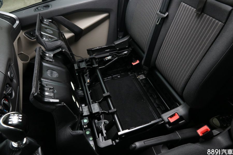 將副駕駛座椅面掀開之後,有隱藏式的置物空間,大約有可放入女用包包的縱深,但因此構造,犧牲了副駕駛座的椅背調整機能,同時因副手座椅背略嫌挺直,難免稍影響乘坐性。