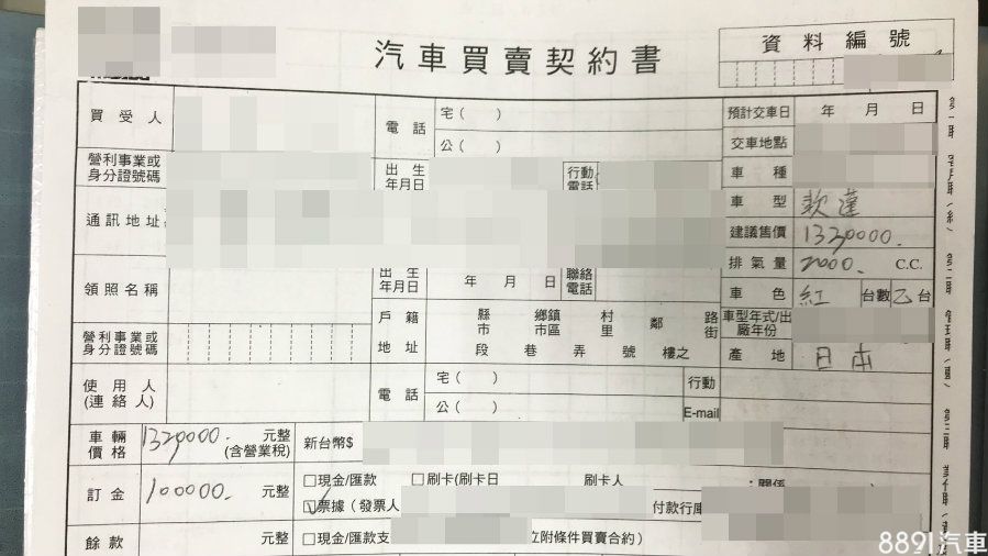 當價錢、配備談妥後,到交付訂金後,都要詳細記載在買賣合約書內,就連一些贈品細節,如隔熱紙廠牌、行車紀錄器型號等,均要條列式、清楚的填寫清楚,避免口說無憑,或是買方跟業務有認知上的不同。