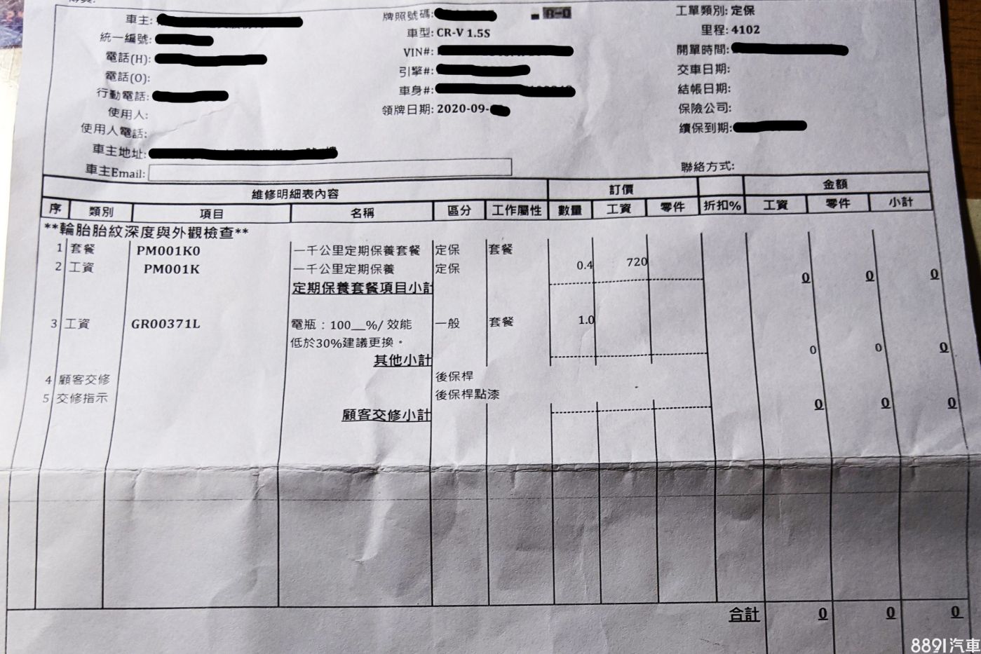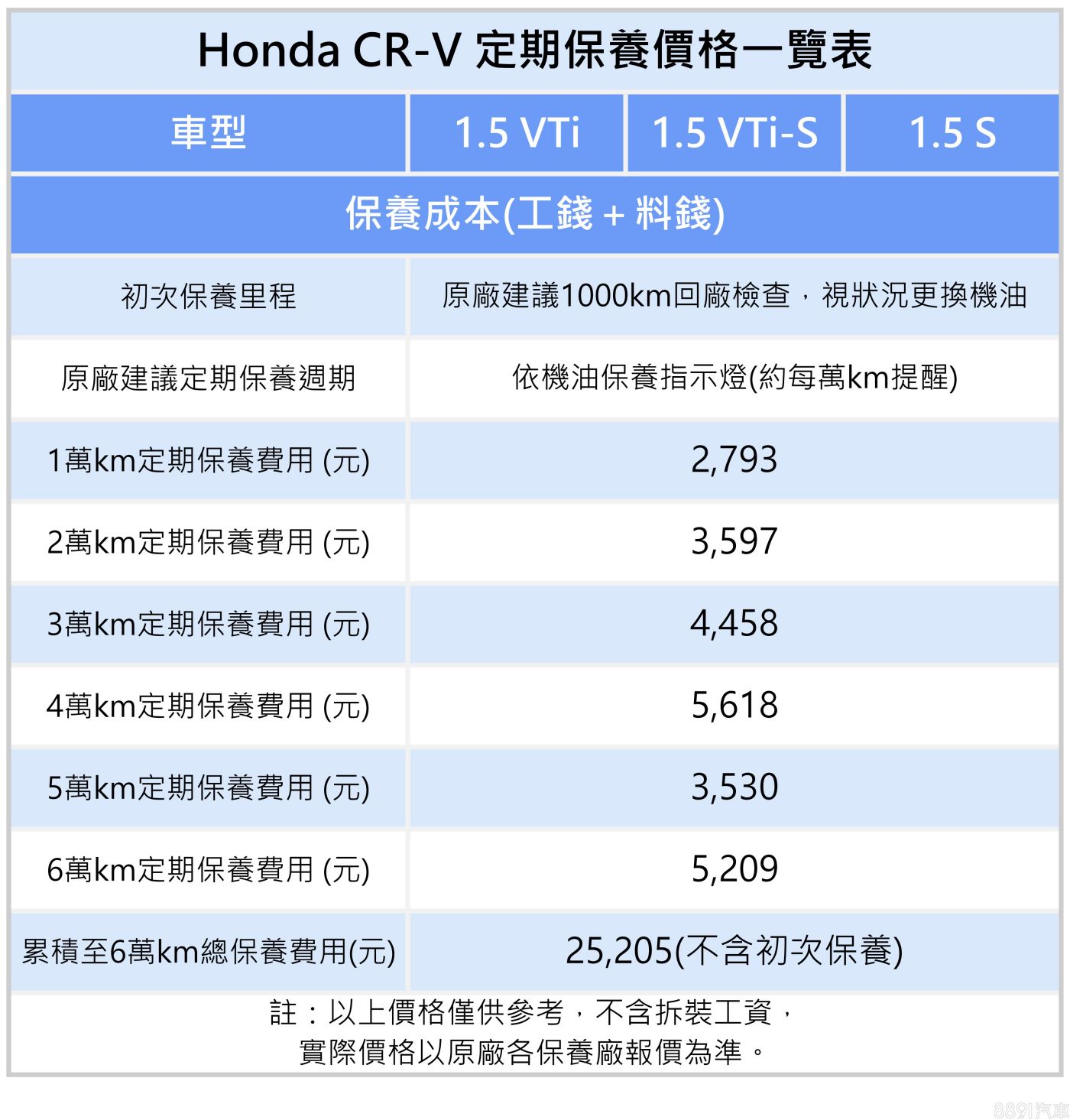 CR-V畢竟是國產車,持有成本不算太高,算算即便累積到6萬km,保養費加一加也只需要2萬多塊,而且跟許多歐系品牌差不多每10000km換一次機油,至少我是覺得很省啦!