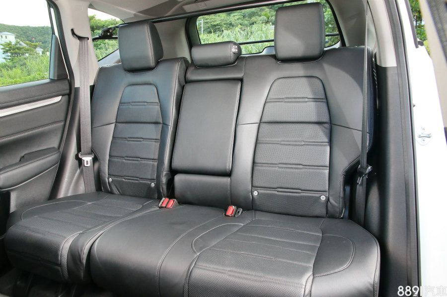後排座椅與前座相同,材質相當柔軟,散熱性也不差,長途旅行也不太有悶熱的感覺,偏長頭枕設計使頭部有更多可倚靠的面積,提升舒緩減壓功效。