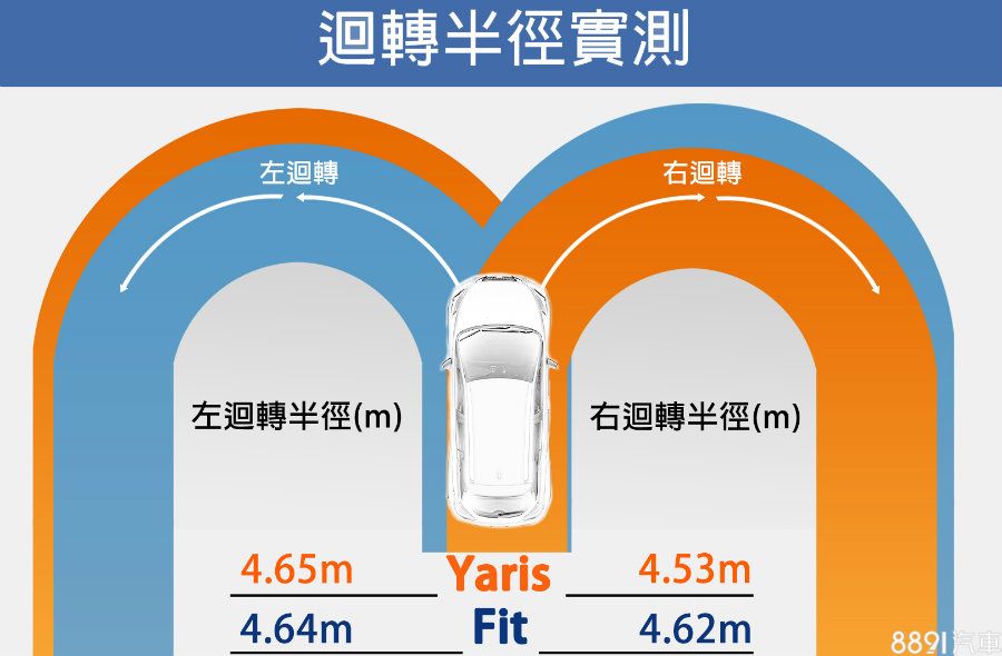 實測迴轉半徑,左右轉數值互有領先,但差異不大,不過都比原廠值小,實際跑起來自然更靈活些。