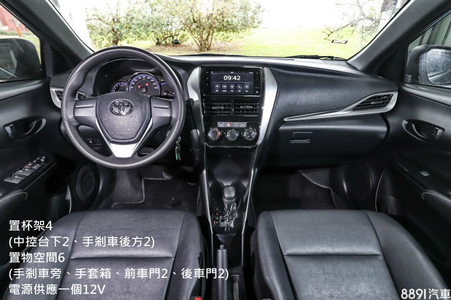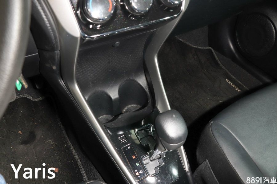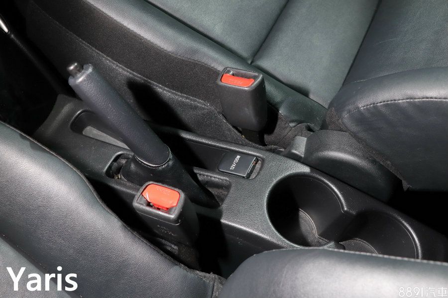 Yaris將12V電源位於手剎車旁,使用上有點不就手,使用各項電器品須由此處拉長充電線,讓車室變得雜亂,同時也缺少USB插座、中央扶手,這些都是會影響實用性的重點配備 。