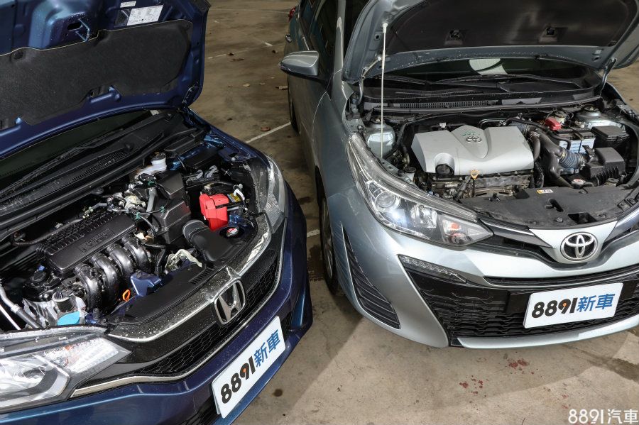 兩車都是1.5升自然進氣引擎、搭配CVT變速箱,引擎科技性上,雖然Fit為SOHC單凸輪軸,看似不比Yaris的DOHC雙凸輪軸,但具備i-VTEC系統,可調整汽門正時與揚程,而Yaris則是雙VTT-i系統,因此沒有絕對的誰優誰劣。
