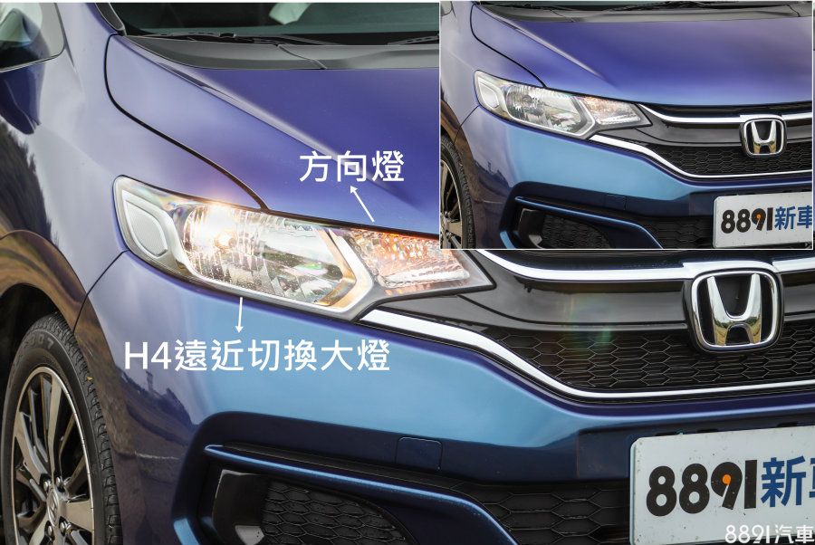 Fit頭燈結構單純,近、遠燈合併,由H4燈炮負責切換,不像Yaris近燈為魚眼結構、遠燈為反射體,但基本上,燈具結構與照明效果沒對等關聯,反倒H4燈炮有便宜的特點。