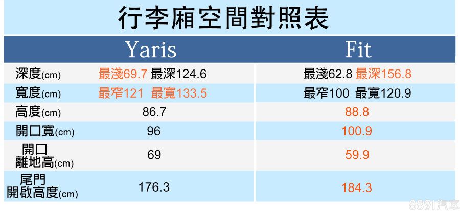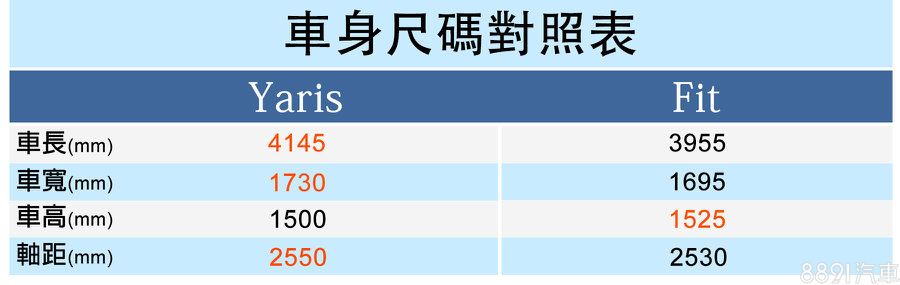 將兩車尺碼列出,可以清楚看出Yaris幾乎都較大一些,但是否會展現在車室空間,後頭實際測量便知曉!