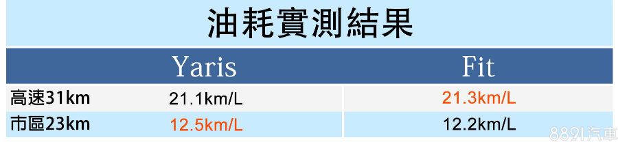 最後測試結果,高速都能突破21km/L,是相當不錯的,至於整體表現,兩車互有領先落後,但差距都頗小,因此可以說,兩車油耗實測結果為平手!