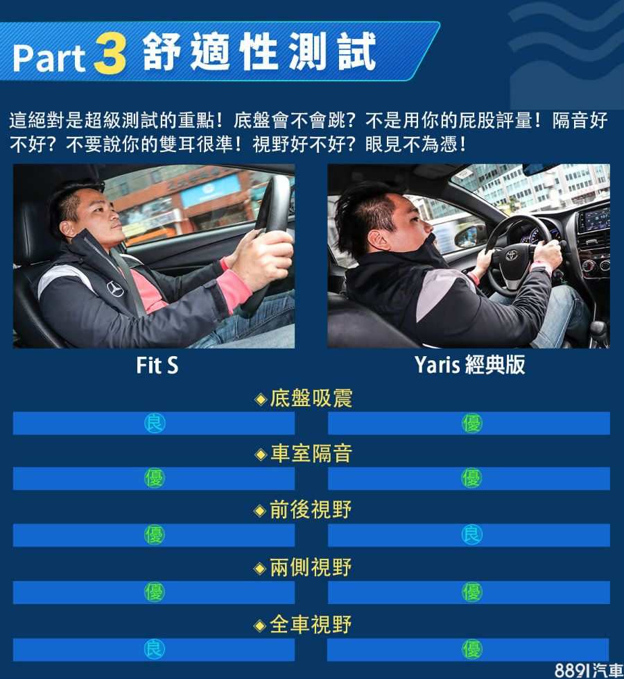 雖然Yaris銷售成績遠勝Fit,但經過全面測量比較,Yaris明顯勝過Fit的是舒適性,底盤吸震表現明顯比Fit出色,果然是一貫的豐田印象!不過在車室空間上,Fit明顯寬廣、機能性也高,此外內裝質感上,Fit也較具優勢,可說是各有強項處!