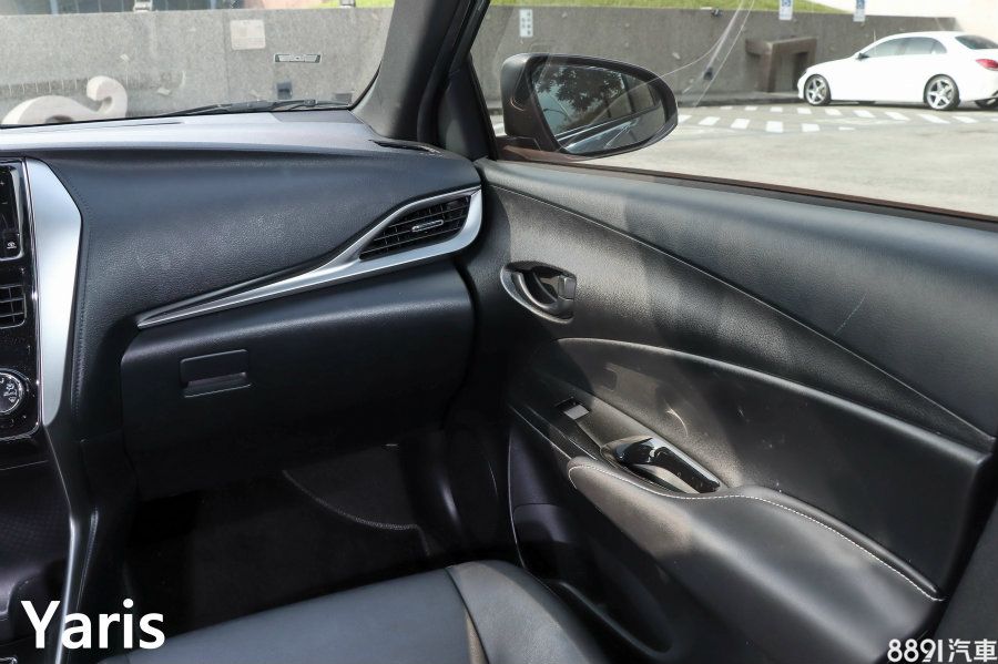 Yaris中控台全為硬塑膠,雖然有縫線設計,但其實是模具造型、非真實縫線 ,而音響主機兩側銀色飾板,烤漆處理帶有塑膠感,整體來說,中控台質感比Fit遜色;而杯架、置物空間數量也不如Fit,這也會影響時使用上的實用性。