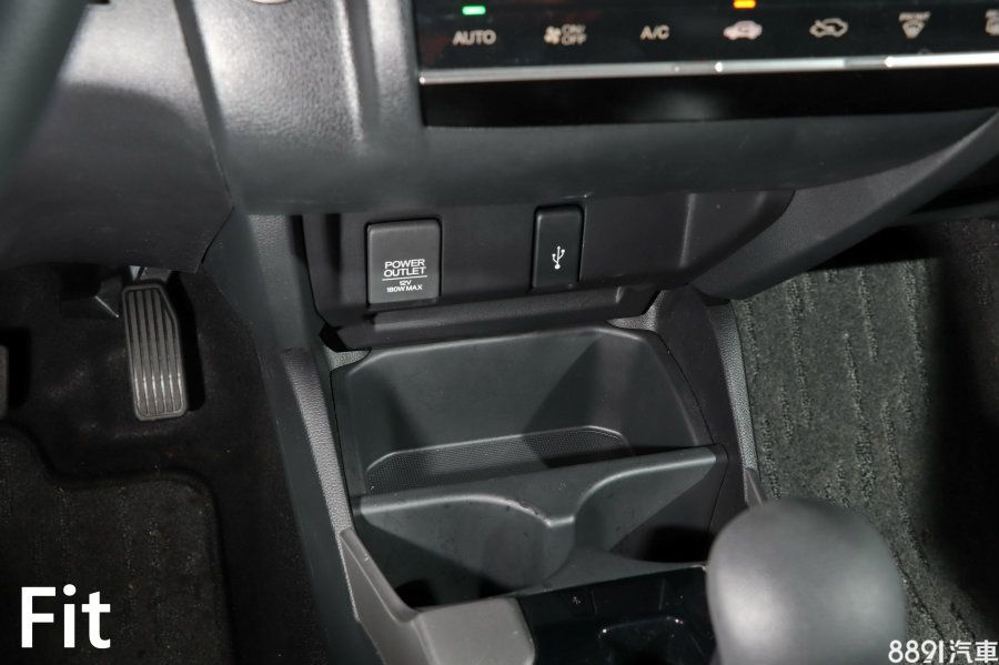 對比Yaris將12V電源設計在手剎車旁,且無USB接口,Fit將兩者放在中控台下方,顯然是方便又貼心許多!