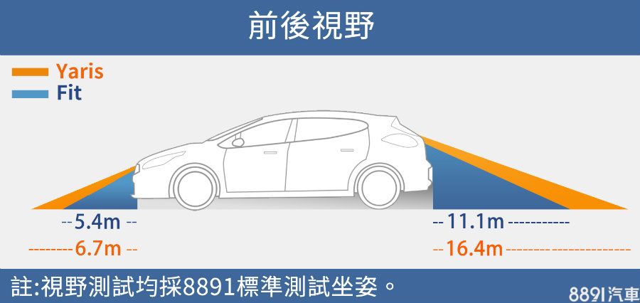Fit車頭短、後擋風玻璃寬大,因此前後可視距離表現,明顯勝過Yaris可說是一點都不意外!