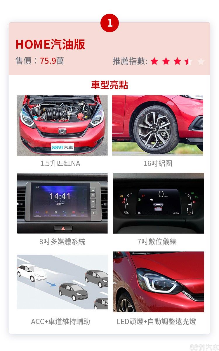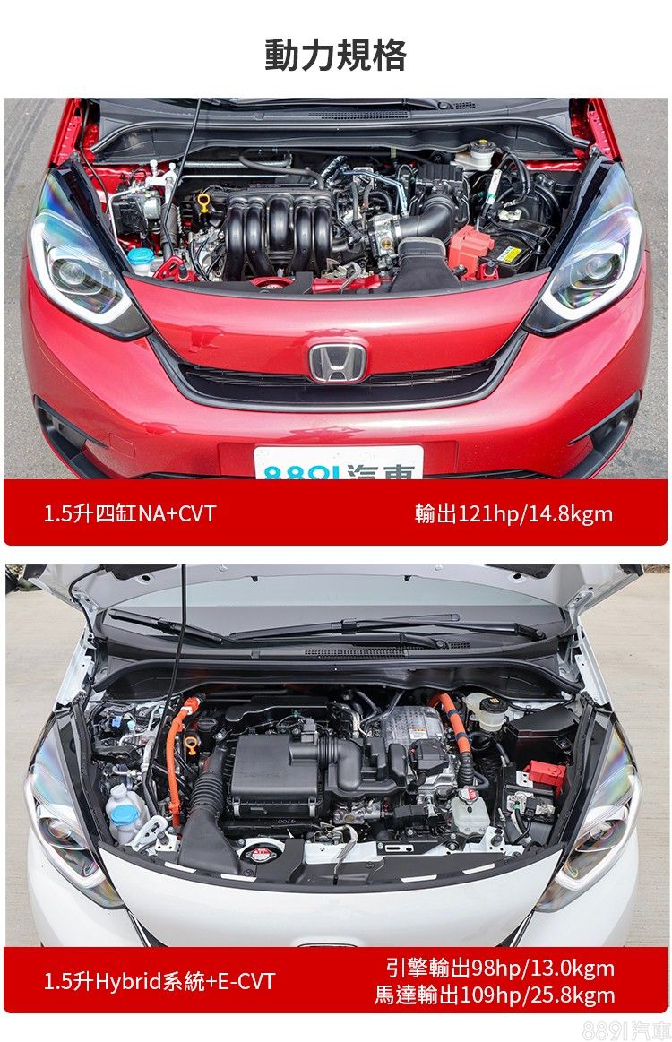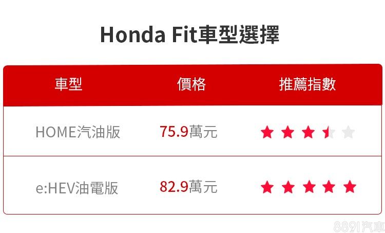 Fit的車型設定並不複雜,就是「汽油」與「油電」各一個車型,兩者除了動力配置有別之外,油電版還多出膝部氣囊、盲點偵測,雖然兩者有著7萬元價差,但一次攻頂能享受更好開省油的動力,安全也更加到位,當然比較推薦。