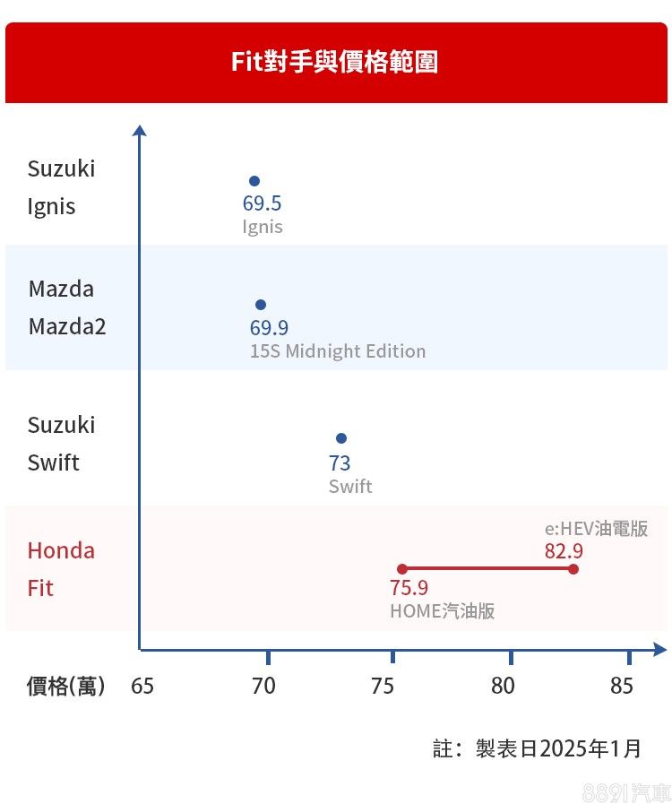 目前市場主流趨勢還是休旅,都會型小掀背選擇不多,以價格為基準列出對手,Ignis、Mazda2、Swift都是進口車型,唯獨本次主角Honda Fit是國產,且沒有比較便宜,汽油版起價75.9萬已經是同級最貴,同級唯一油電設定的e:HEV版本82.9萬,更比起Swift更貴了快10萬元。但如同前文所說,Fit賣最貴,但也賣最好,可見品牌力、產品力強,不怕價格競爭。
