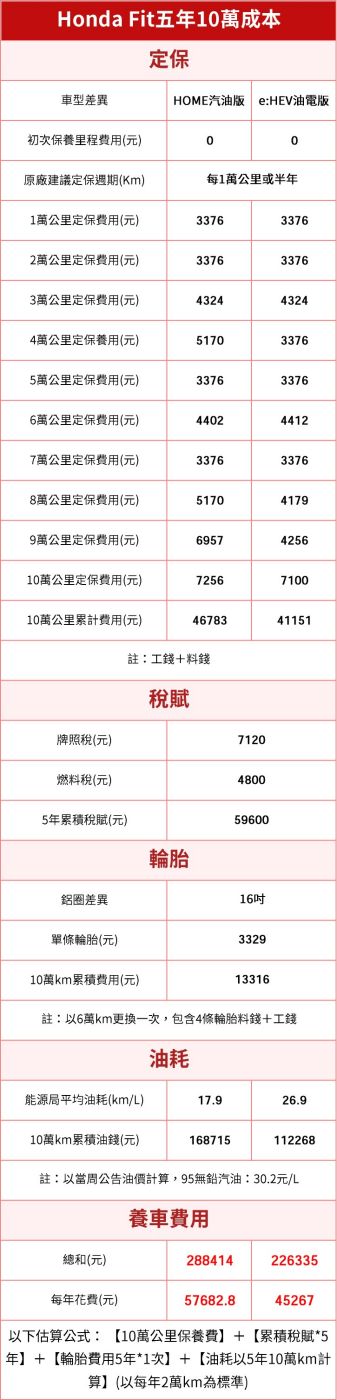 兩個版本的養車費用差異其實不小,油電版累積10萬公里保養費,比起汽油版便宜了5632元,還可省下56447元油錢,平均下來每年保養比汽油版便宜了12415元。