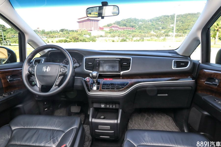 車室以平順的線條營造出簡潔沉穩的風格,採用木紋飾板及多處的霧面的金屬金屬飾條點綴出質感,儀錶板中央為時速表,兩側搭配液晶資訊幕,四幅式多功能方向盤附有全車系標配的換檔撥片,中控台上方一樣屬於全車系標配的7吋觸控式多功能資訊幕整合娛樂、藍芽、衛星導航及車況信息等功能,反應及時,但在介面操作上需花一點時間適應方能就手。多功能資訊幕下方就是空調介面與排檔座,往下還有提供有兩組USB插槽,以現代人來說是十分方便好用的設置,並有一組HDMI線和12V電源插座的插槽,另外,Odyssey的手剎車是採用腳踏的方式,加上排檔座也上移,因此前座中央形成與後方連通的走道,我們認為此設計對MPV車型相當受用,有利減輕前後成員的距離感,甚至便於拿取物品、前後換位等,同級對手Previa也是如此設計,而另一歐系競爭者VW Sharan就非採相同設計,各有各自思維。