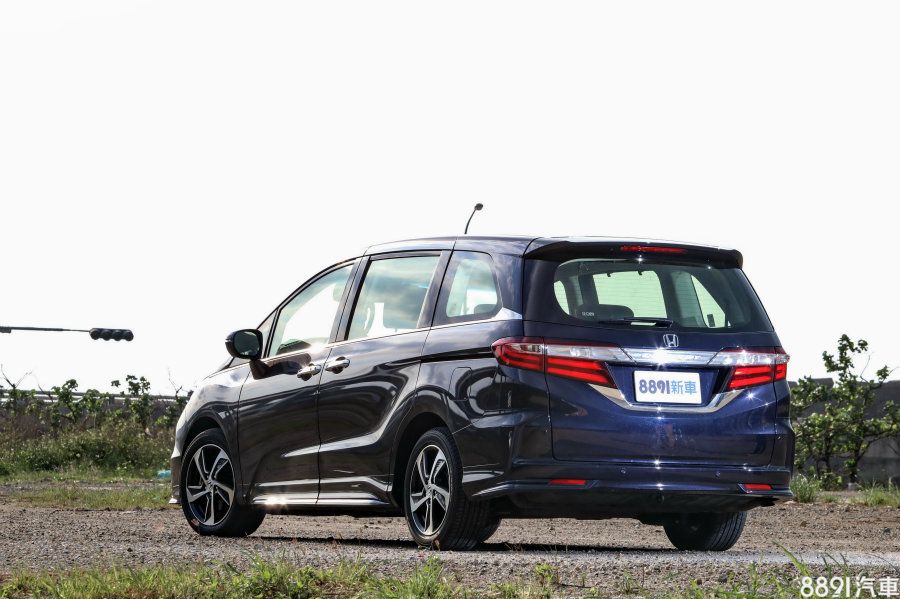 車側腰線由頭燈組延伸至C柱後方的鍍鉻飾條點綴,增添些許質感,尾門上方延伸出的小鴨尾、中央與兩側尾燈組連結的車款銘牌,尾燈組導入LED光條設計,與方向燈、倒車燈連成一線,下方並施以粗壯的鍍鉻材質裝飾,均讓Odyssey擺脫了MPV容易給人笨重的視覺感受,擁有其不容錯認的特徵。