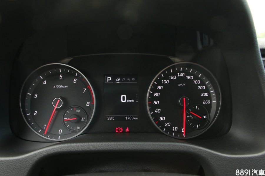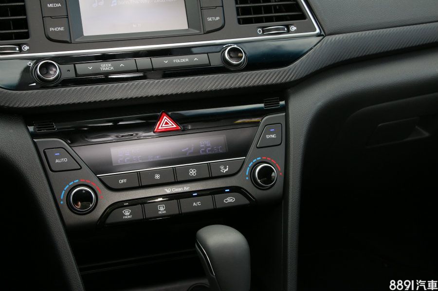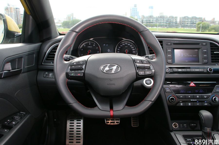 握感與造型都出色的三輻式運動化平底方向盤,也是有效提升車室動感氛圍的招式之一,且標配了換檔撥片,呼應Elantra Sport的產品設定。左側為音響控制及藍芽接聽電話;右側則為定速巡航與旅程電腦的控制鍵。