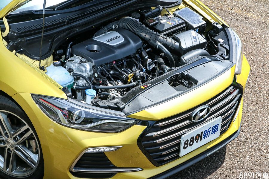 Elantra Sport搭載1.6升直列四缸渦輪增壓引擎,具備缸內直噴技術,最大輸出為204hp/6000rpm、27.0kgm/1500~4500rpm,這具引擎其實也就是Tucson 1.6 Turbo心臟,不過Elantra Sport出力更大一些,也因此引擎本體做了一些硬體調整,根據總代理表示,引擎汽缸頭經過強化,以應付高動力所帶來的溫度影響,此外原本電子式洩壓閥改為傳統機械結構,原廠說法也是因應溫度而做的改變。
