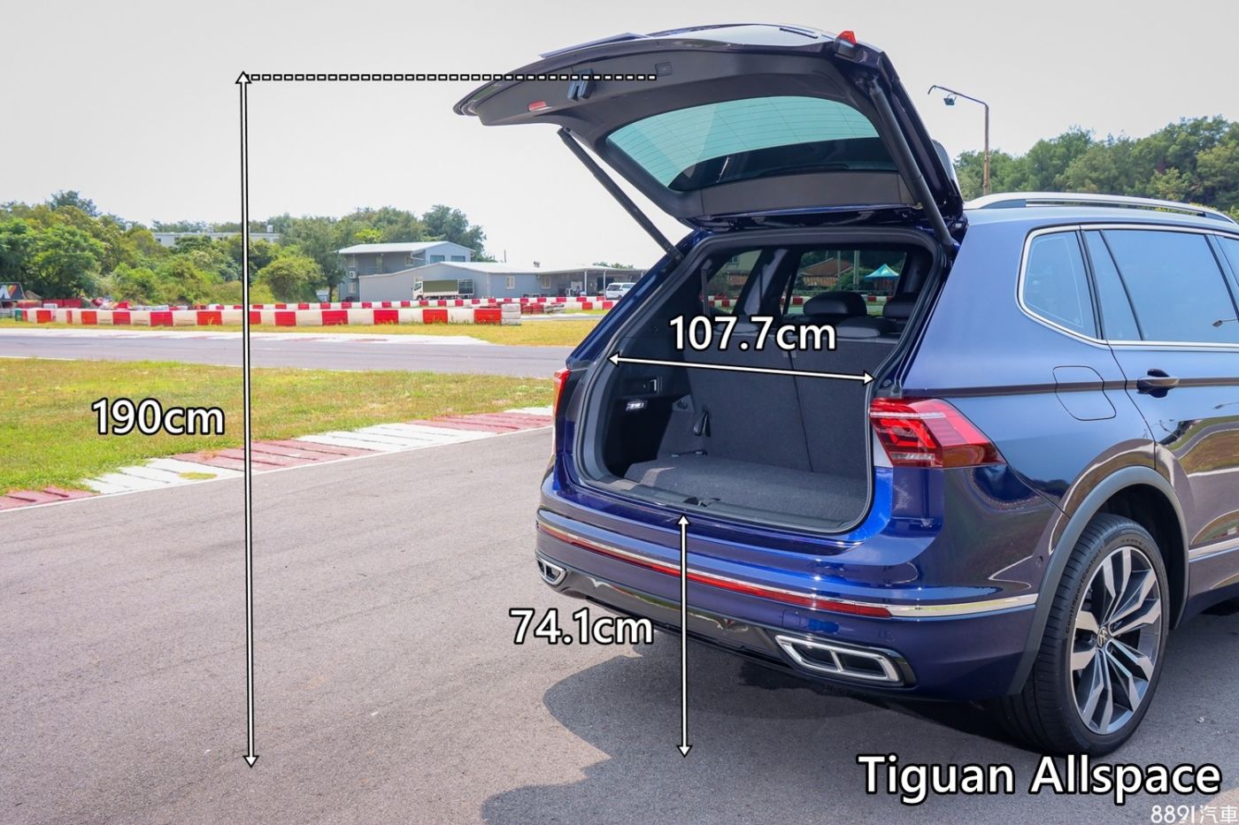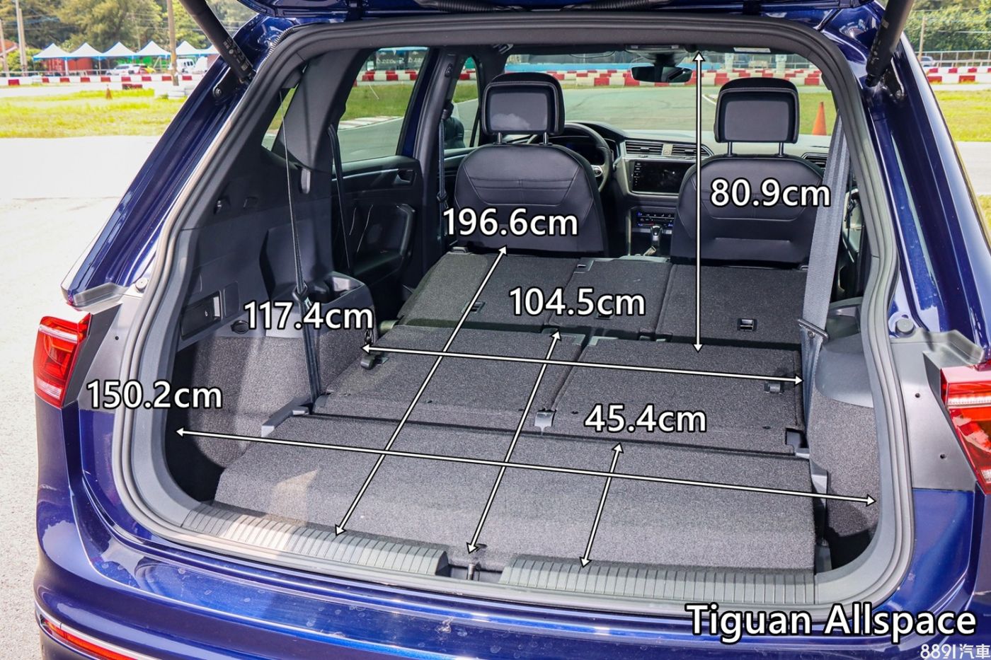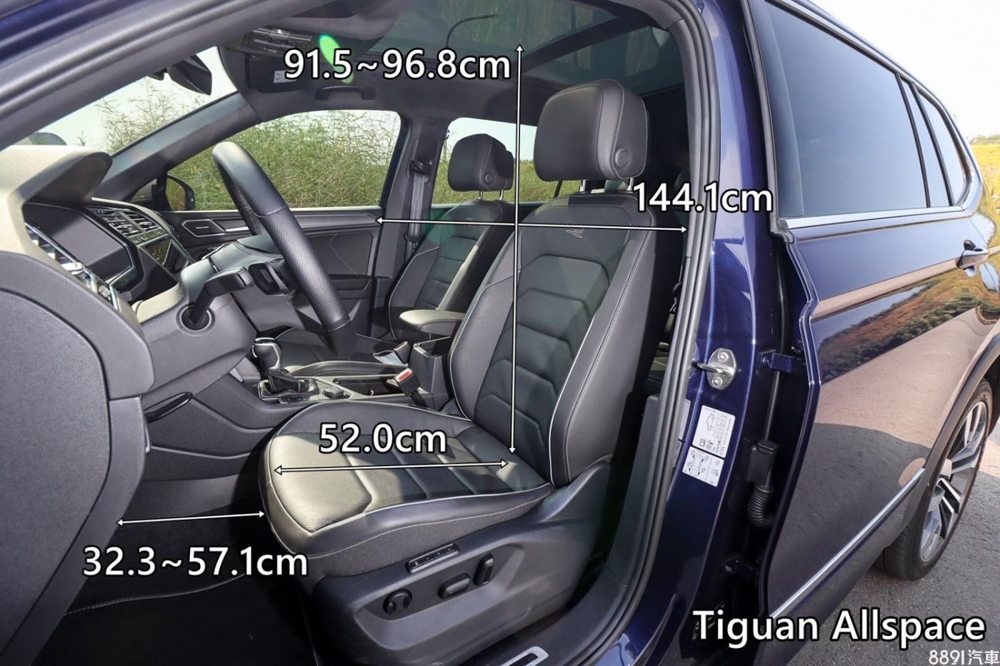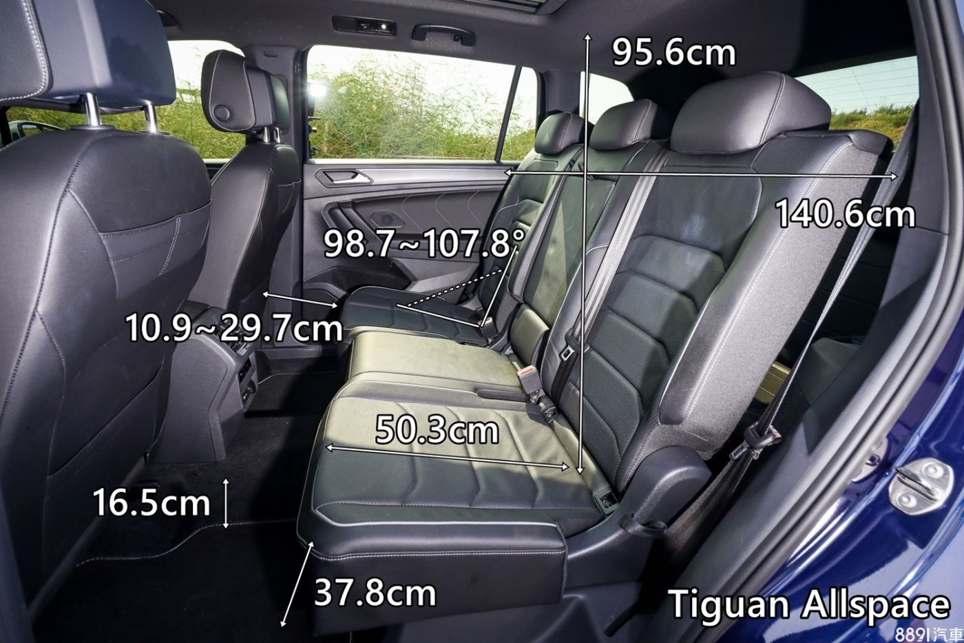 Tiguan Allspace後座寬度與高度都處於後段班,且地板中央隆起達16.5cm是同場最高,乘坐空間明顯不是強項,不過後門開口寬大,且門檻離地面最近,對於乘客進出會比較輕鬆。