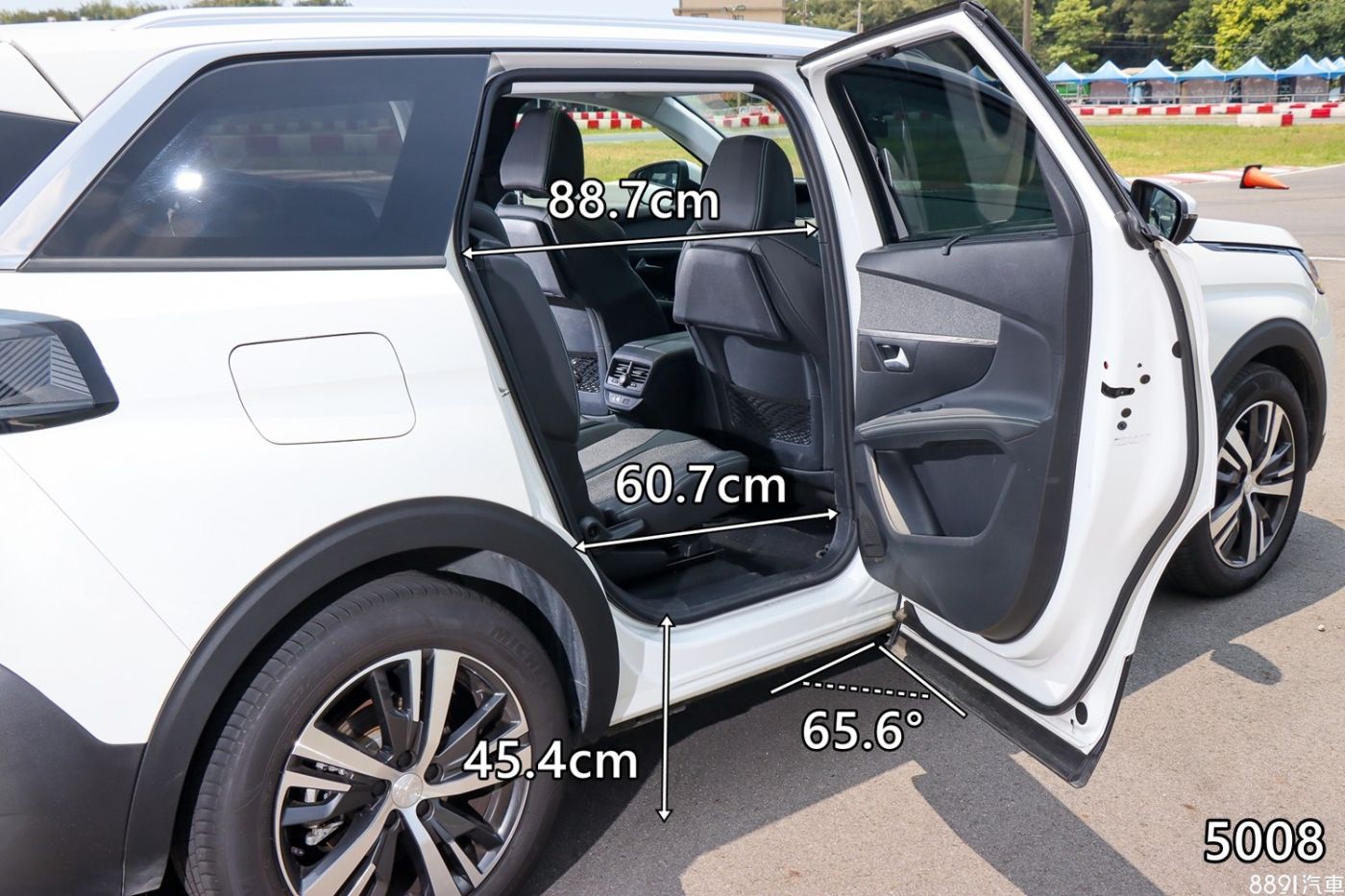 5008後座採三張獨立式設計,雖然這讓每張座椅的尺寸也因此小了些,但其可各自前後滑動、調整椅背角度,有比傳統6/4分離有更多對應性,且5008擁有同場最突出的膝部空間以及全平整化中央地板,後門開口、離地高也都有前段班,缺點就真的是車室較窄,乘坐三名成人會有「肩並肩」的狀況。