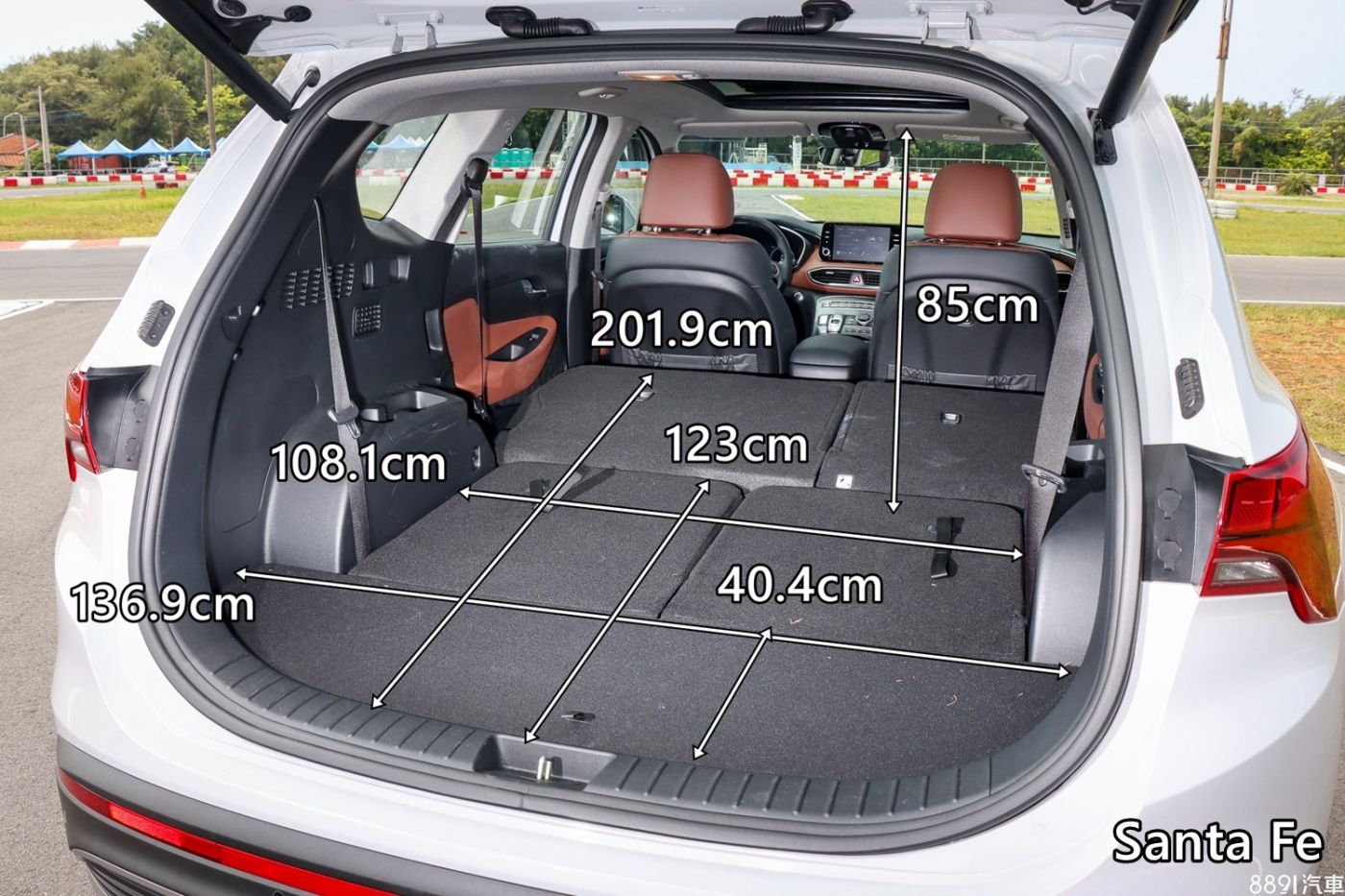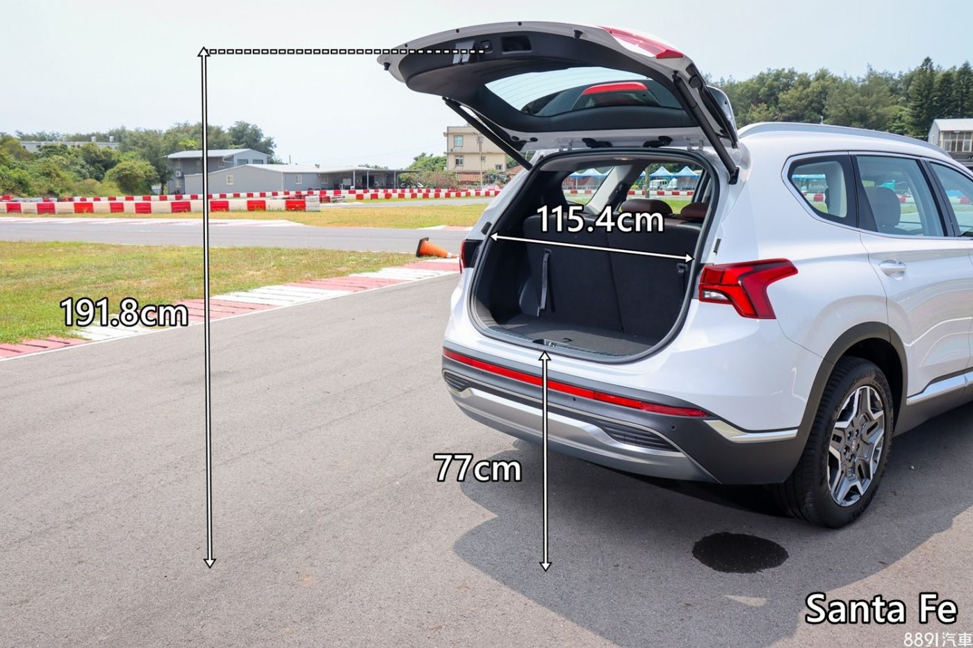 Santa Fe座椅傾倒後平整性十分出色,深度表現也僅次於CX-9,最深數據一舉突破2m,同時也具備最寬的行李廂開口,雖然寬度較不亮眼,但整體來說仍相當好擺好放,另外,五車都有電動尾門,可以自行設定尾門開啟高度,身型嬌小的人也不用擔心。