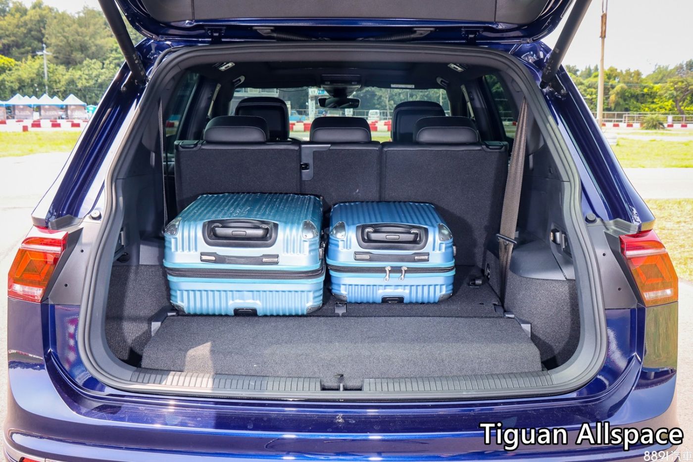雖然乘坐空間不吃香,但Tiguan Allspace在行李廂空間扳回一城,寬度數據是全場之最,擺放大型物品會相對輕鬆,且在三排都坐人的情況下,45.4cm的行李廂深度也僅次於CX-9,這部份在滿載出遊時可以容納更多行李。