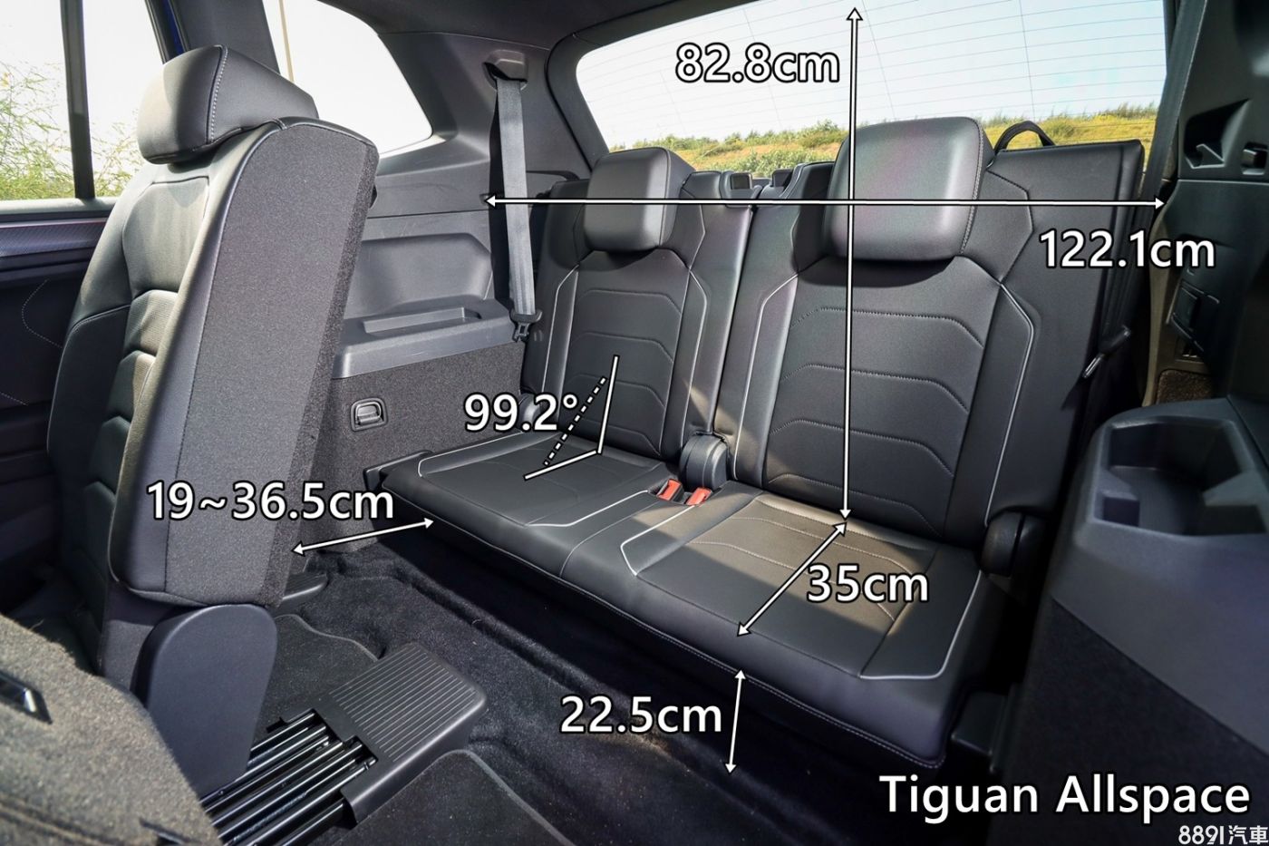 Tiguan Allspace第三排表現相對沒有亮點,沒有一項數據是同場最突出的,且座椅尺碼較小、椅背傾斜角度較垂直,坐起來會比較拘束。