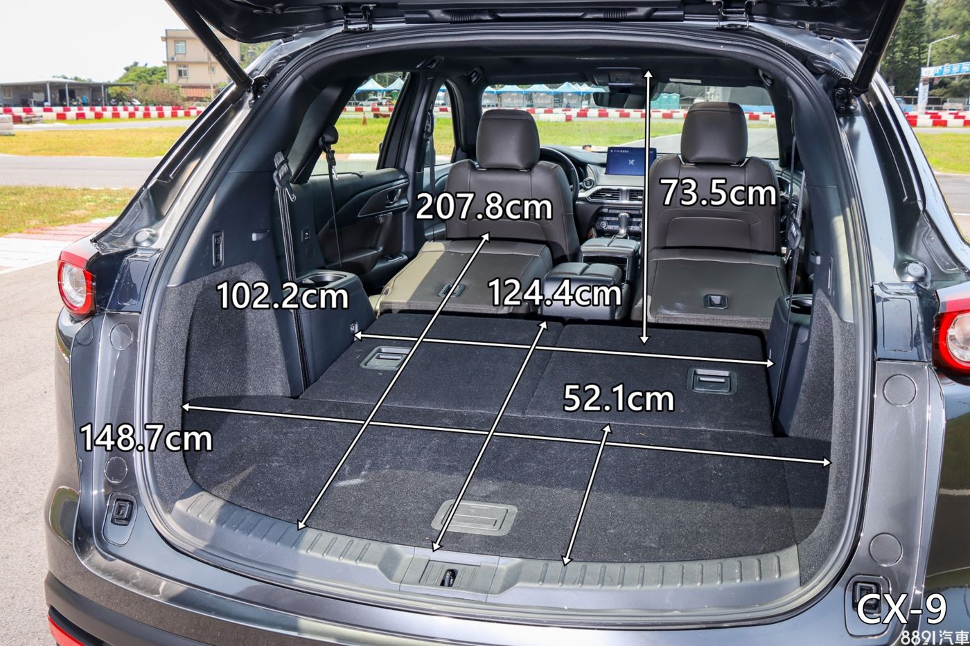 再次受惠於最大的車身尺碼,CX-9於行李廂的三項深度數據都是五車最佳,且差距不小,不過要注意的是,行李廂高度僅73.5cm,在五車中表現最差,在擺放高度較高的物品時得要多注意,能平放就平放,善加利用這個「很深」的空間。