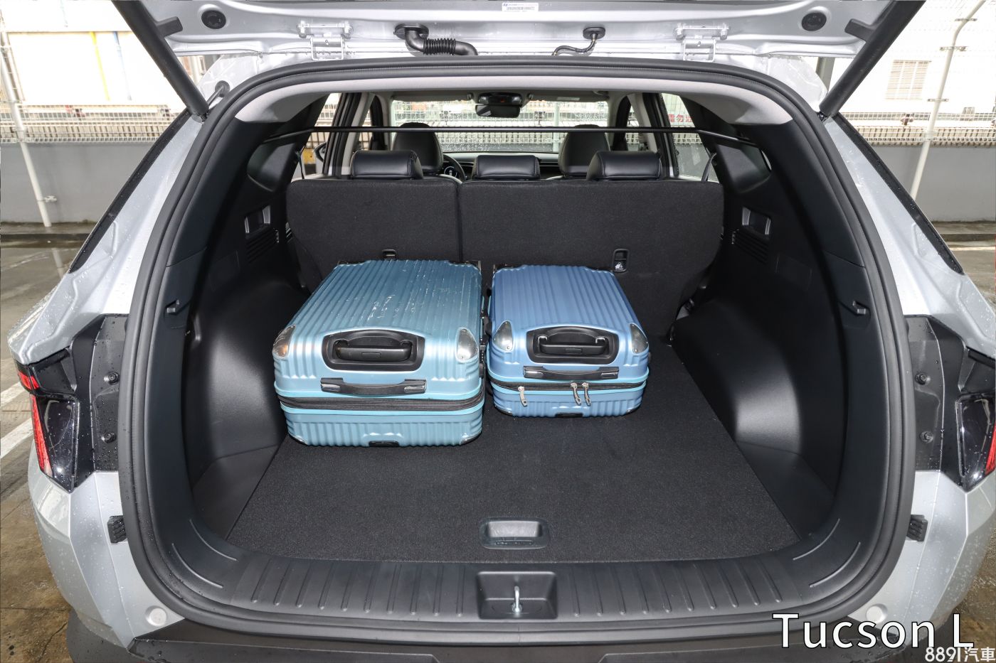 固定示範的20吋、26吋行李箱當然都能輕鬆放入,且高度、寬度都還頗有餘裕,若改成垂直擺放,三車都能輕鬆放入3~4只大型行李箱,不過從照片中能看出,Tucson的深度表現最好,行李箱以同樣方式擺設,距離開口的餘裕最大。