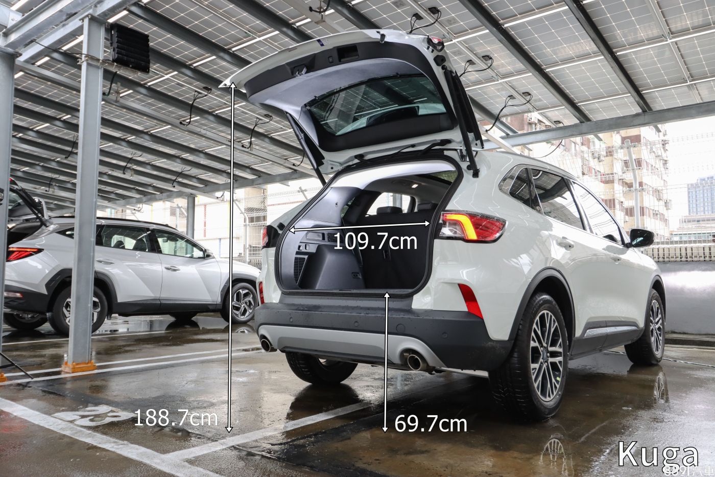 Tucson L擁有最寬的尾廂開口,CR-V則是門檻高度最低,Kuga實測數據則恰好介於兩位對手之間,此外三車都配有電動尾門,可自訂尾門開啟高度之外,Tuscon L具備靠近感應開啟、Kuga則提供腳踢感應開啟,唯獨CR-V沒有任何感應開啟功能。