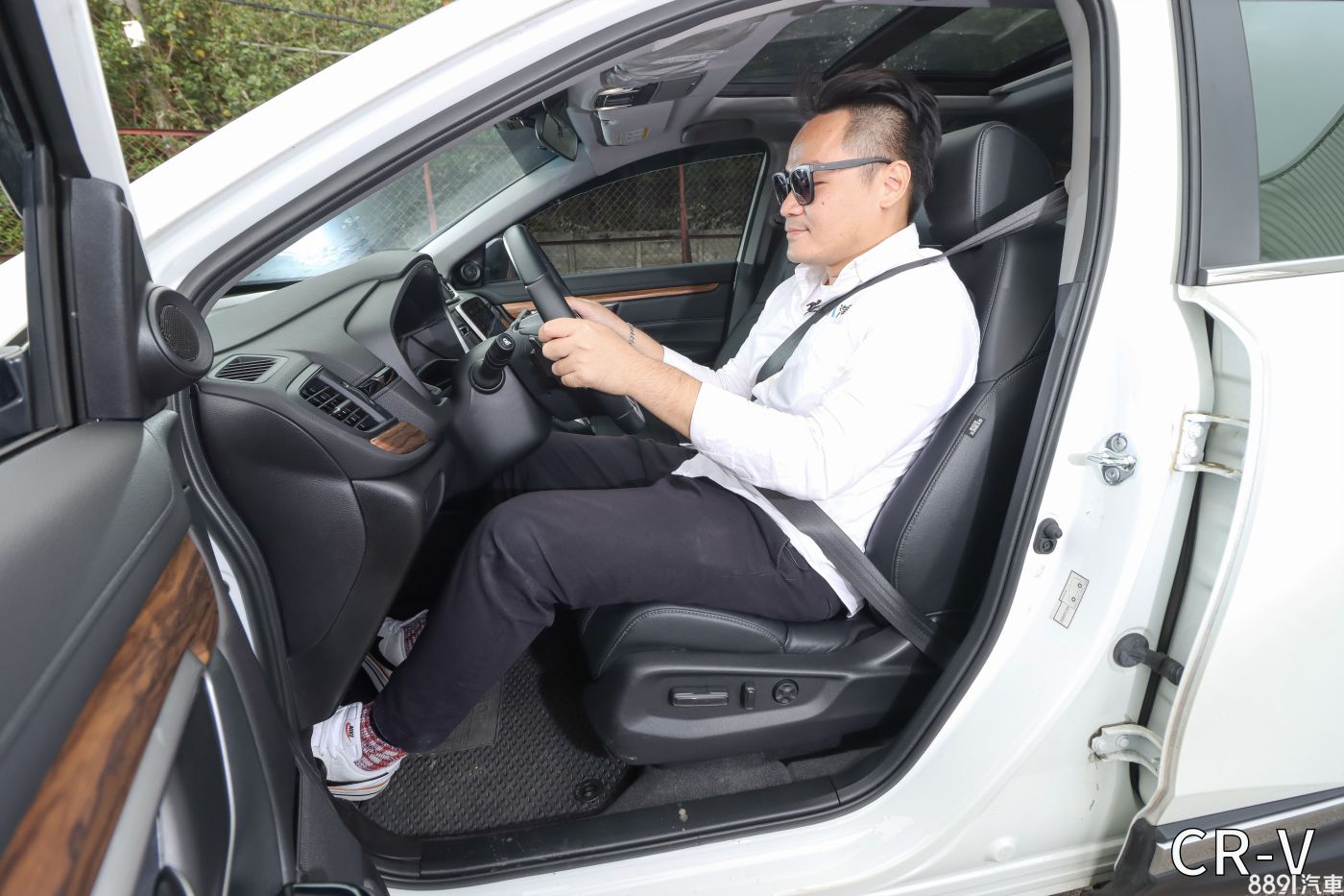 CR-V前座椅型寬大,配上開闊的橫向空間,給人「開大車」的錯覺,這張座椅泡棉質地紮實,乘坐感受偏硬,厚實椅背與足夠的側向包覆,舒適性同樣到位。另外,CR-V是三車之中為一具備副駕駛座四向電動調整的車款。