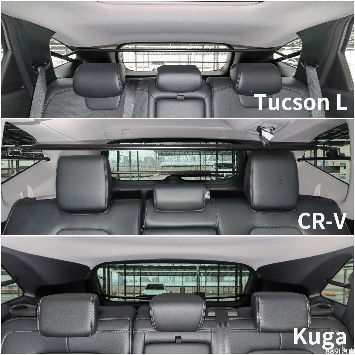 前座空間三車各自有其優勢,Tucson L縱向空間最為出色,椅面長度也來到51.2cm,能充分對應不同身材的駕駛人,CR-V則在橫向寬度達到147.1cm,薄型化內門版帶來開闊的橫向空間,至於Kuga在車室高度最為理想,但整體而言三車前座空間規劃都很出色,舒適性與空間感都能讓人滿意。