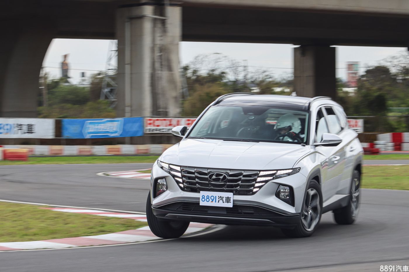 除了車頭指向性好,車尾跟進性也不錯,而避震器阻尼明顯比CR-V強,這也有助於過彎操控感,激烈操駕下,車身穩定度比CR-V好上許多,與Kuga則是伯仲之間。雙離合器變速箱是要提出來稱讚的另一點,雖然畢竟不是性能車設定,換檔還稱不上電光火石,但比起CR-V的CVT、Kuga的自排,自主性、俐落度都明顯更好,跑起來更得心應手!最後Tucson L跑出最快成績是47.7秒,在中型SUV級距裡算是名列前茅!