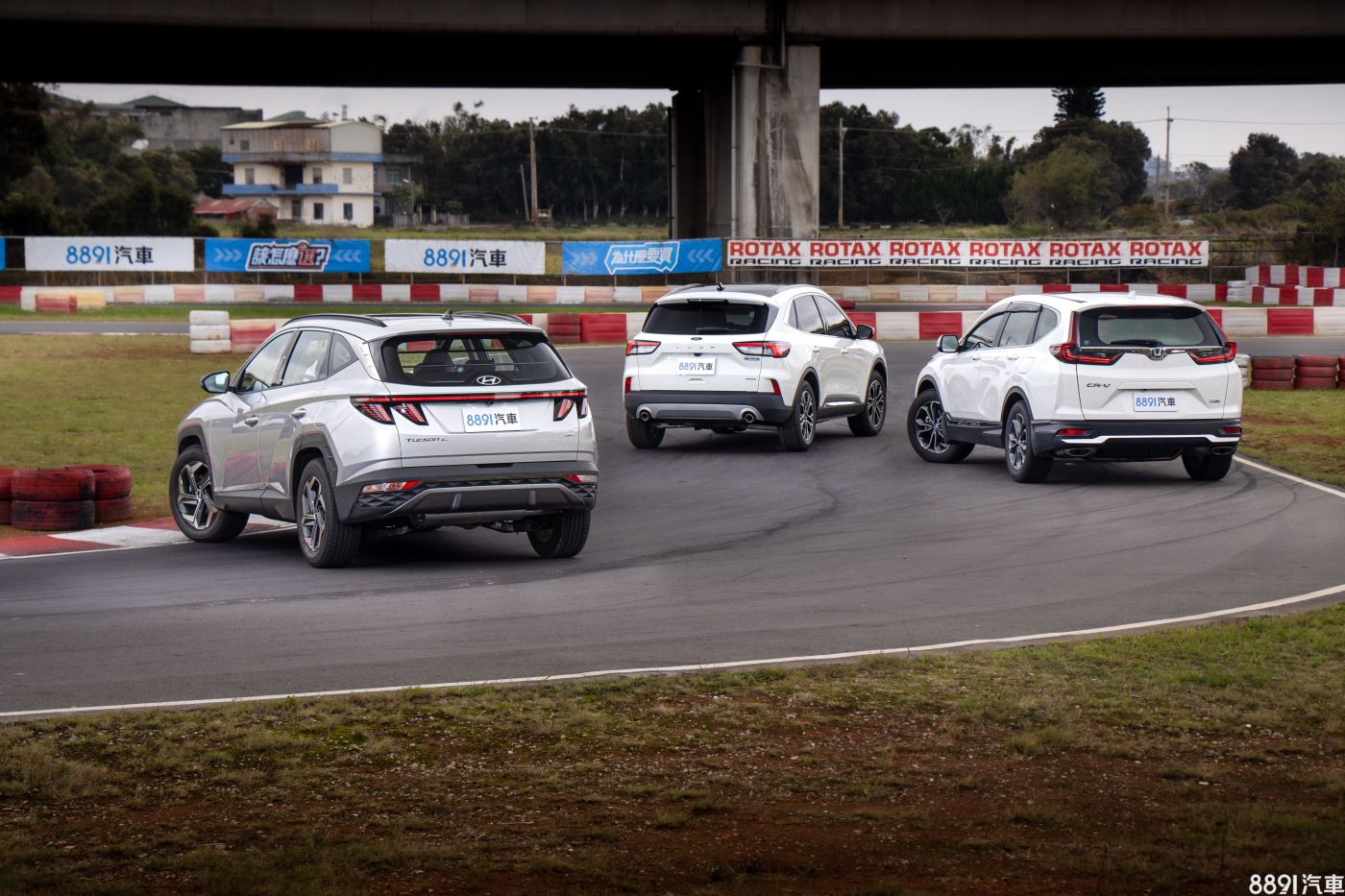 那CR-V與Kuga就完全被比下去了嗎?當然也不是,這兩車就像天秤的兩端,各自的特色十分明顯,Kuga的強項是有較濃的運動性,雖然加速成績沒有特別出色,但良好的車頭指向性以及較為硬朗的底盤調校,有三車之中最動感的操駕表現,在賽道測試繳出最快的47.6秒成績就是最佳證明,另外在科技配備上,面對世代較新的Tucson L也不顯得居下風。