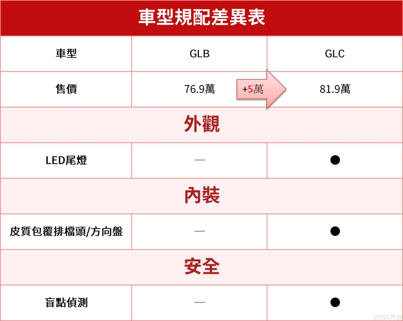 淺棕色、深棕搭配是我最喜歡的,看起來很像時下流行的奶茶色,搭配可愛的外型,相信女生們看到一定愛上,且這搭配在小改款之前是「限量」,現在直接常態供應,必選!如果你是酷哥,仙蹤綠也很推,是GLB中階版專屬色,燻黑鋁圈配起來Outdoor氣息滿滿。