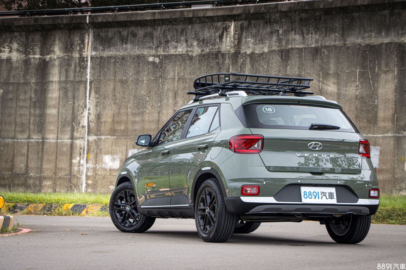 Venue全車系皆採用Hyundai家族化設計語彙,雙層頭燈、水箱護罩極具辨識度。GLB 車型起即可選配雙色車頂與LED頭燈,較入門GLA更具年輕動感氛圍,如果是選擇圖片中的仙蹤綠車色(中階專屬),還有專屬17吋消光黑鋁圈,買頂規還沒它騷包。
